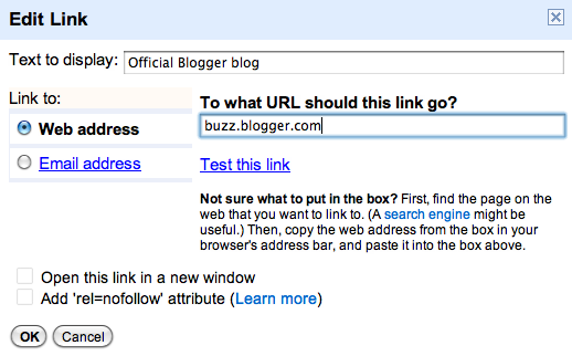 Si el botón "Enlace" no funciona o no aparece en tu navegador, haz clic en Editar HTML y escribe: